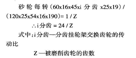 分齒掛輪架是用來調(diào)整被磨削齒輪齒數(shù)的。根據(jù)從砂輪主軸至工件主軸運動鏈的運動平衡方程式來進行掛輪架的調(diào)整: