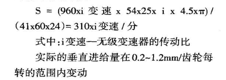 被磨削齒輪的垂直進給系是借用球形盤式無極變速器獨立的傳動來實現(xiàn)的,被磨削齒輪的進給速度: