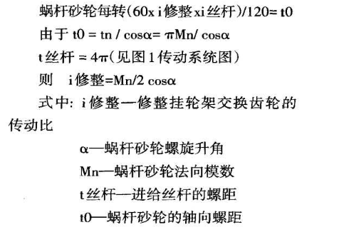 毫米。因此修整掛輪可根據(jù)從砂輪主軸到修整機構(gòu)絲杠運動鏈的平衡方程式來調(diào)整: